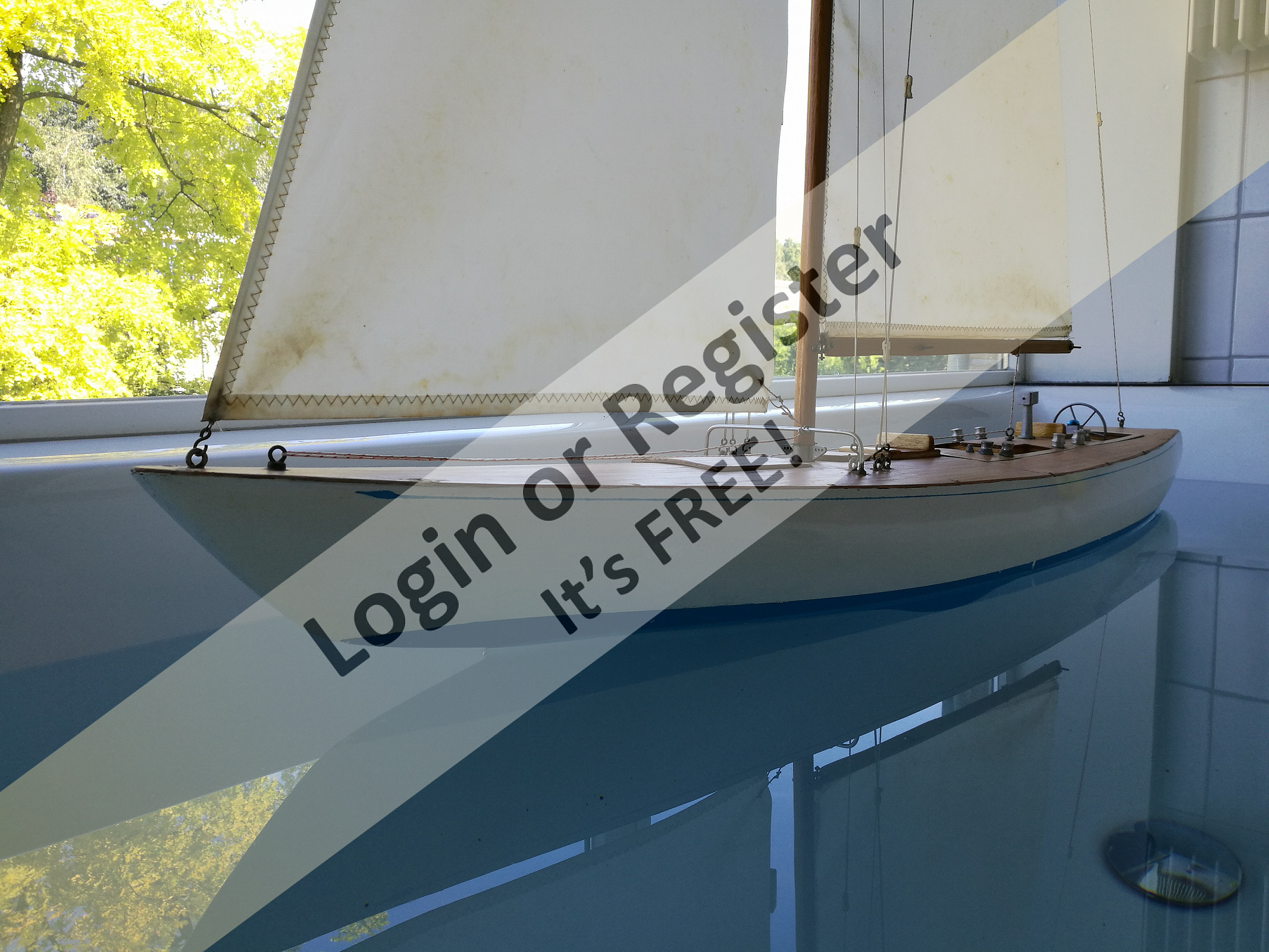 This is one of my two Graupner Rubin yachts. The Rubin is - to me - the all time queen of RC semi scale yachts. Detailed, impressive dimensions, fast, very rare and barely affordable. When new I wasn't able to pay for such a model, but as one gets older... Anyway, after finishing some others my attention will go to these two. Why having two of the same models? They are very rare, and I was just in the opportunity to buy another. The first one - shown here - needs a thorough rebuild, and the second one is an almost untouched new model! (5/10)