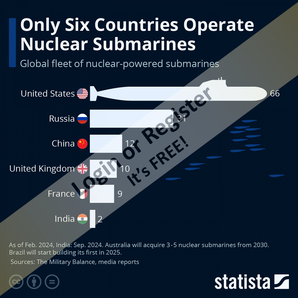 I make it around 130, although it is highly questionable how many of the Russian subs are actually operational.๐