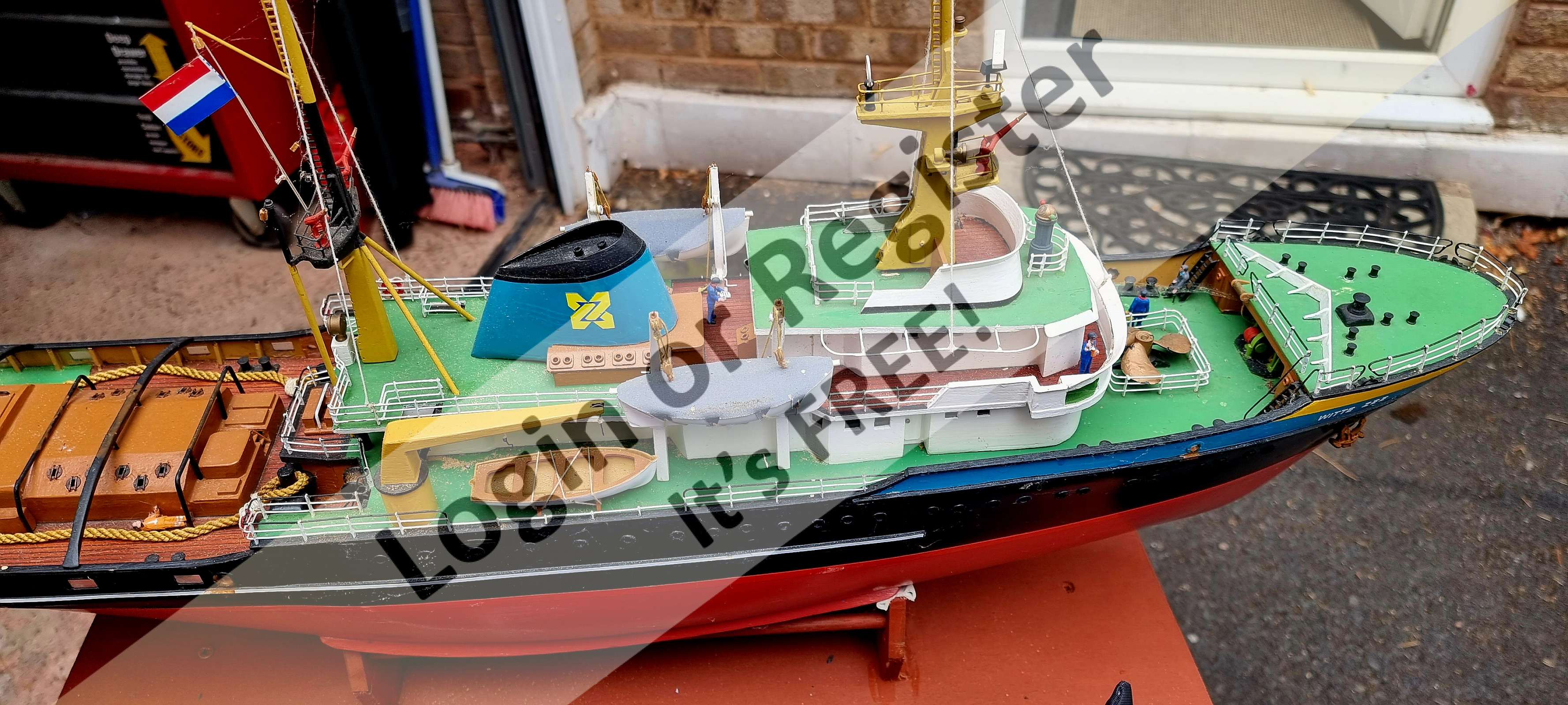 She is a 1/12th semi scale Brede model of the Poole lifeboat used for many years. She is constantly being modified and improved. (Motor: Graupner 700 x 2) (ESC: Hobbywing) (5/10)