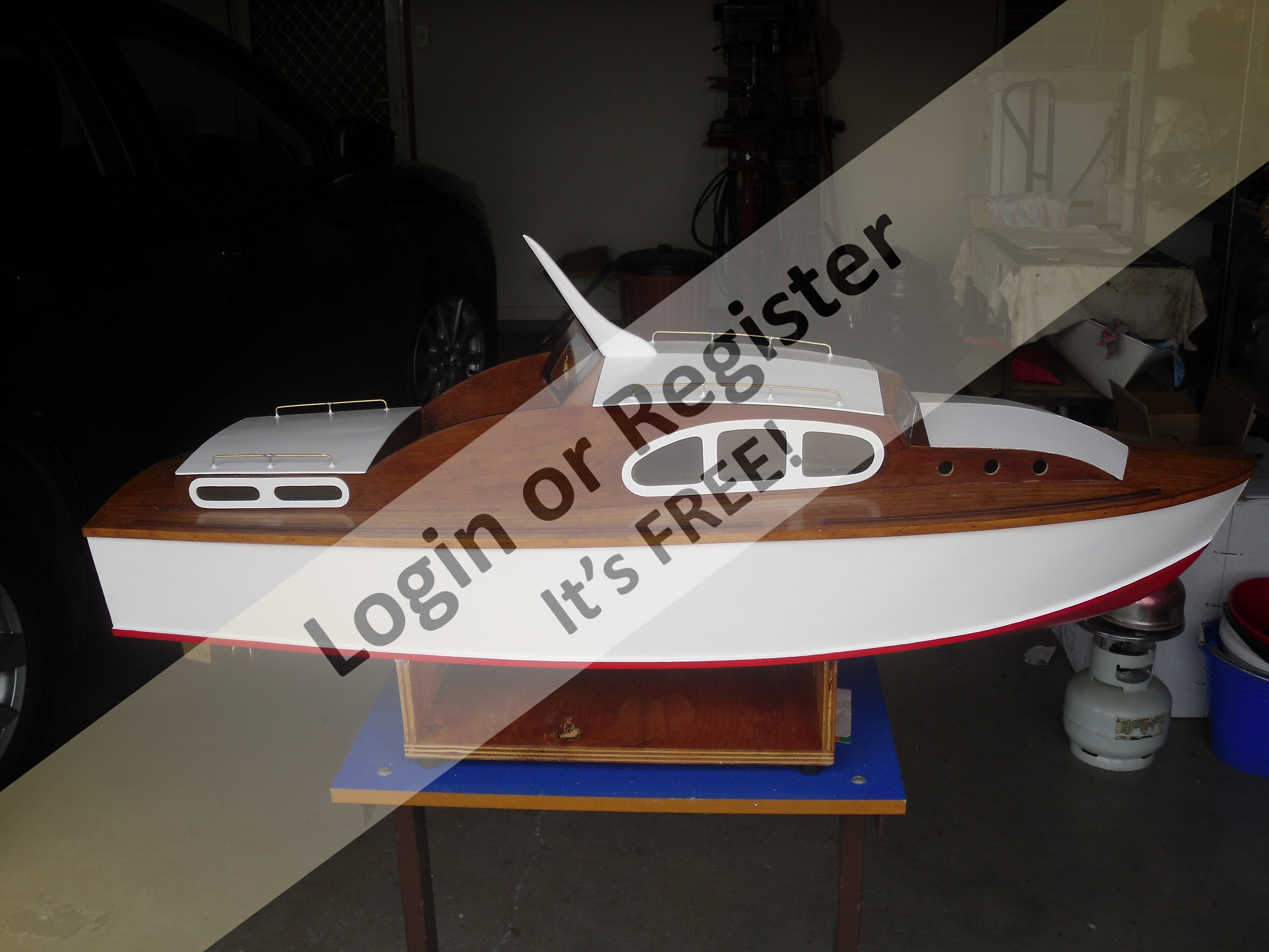 I built it years ago and converted it to a Skidoo. Went like the clappers. Build it out of Balsa not plywood as the plywood makes it a bit heavy and you need a gutsy motor to push it along.