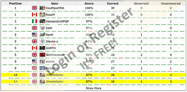 Well I got todays answer correct. But it might be all down hill from here on. Off for a weeks holiday and not sure what the internet connectivity will be like when we get to Turkey..๐