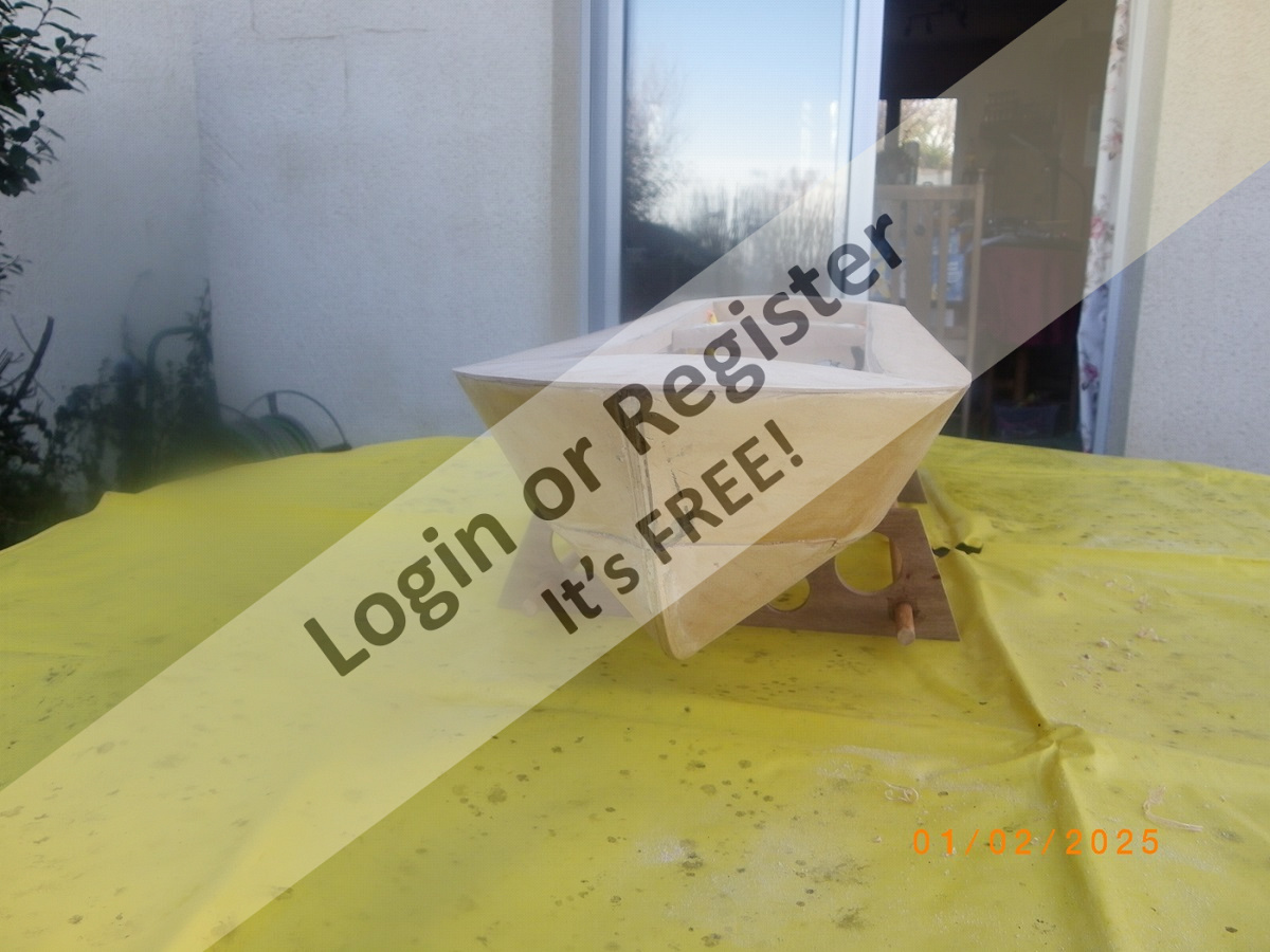 When we first arrived here in France the house had a central heating system fitted, all the rads were old fashioned cast iron thin column jobs, they needed sandblasting and re furbishing, found a guy locally who agreed to do the refurb his quoted price was on the high side,however when we went to collect I spied some grp hulls, we got talking, he had produced the hulls(he always had an eye to make money. I negotiated a price for the rads and 3 hulls, still got 2 spare, I think the 2 were the first 2 off the moulds, a bit rough but recoverable. He also supplied plans and after finishing the house refurb construction began. Did it at my local club, no english speakers so a little problematic. I followed the instructions initially then seeing easier solutions started doing my own thing. i had lots of finger wagging etc from the french members(they are very tunnel visioned) However they were complementary about the final product.