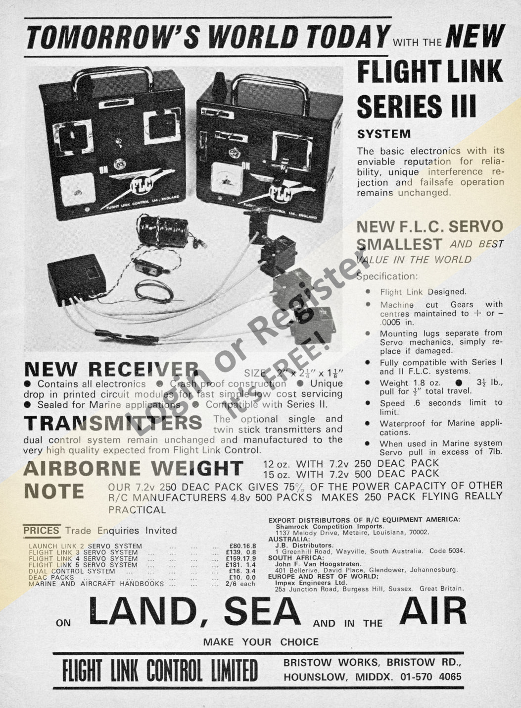 I am a keen collector of old radio control sets and have a great interest in the British manufacturer Flight Link Control from Hounslow in Middlesex.
