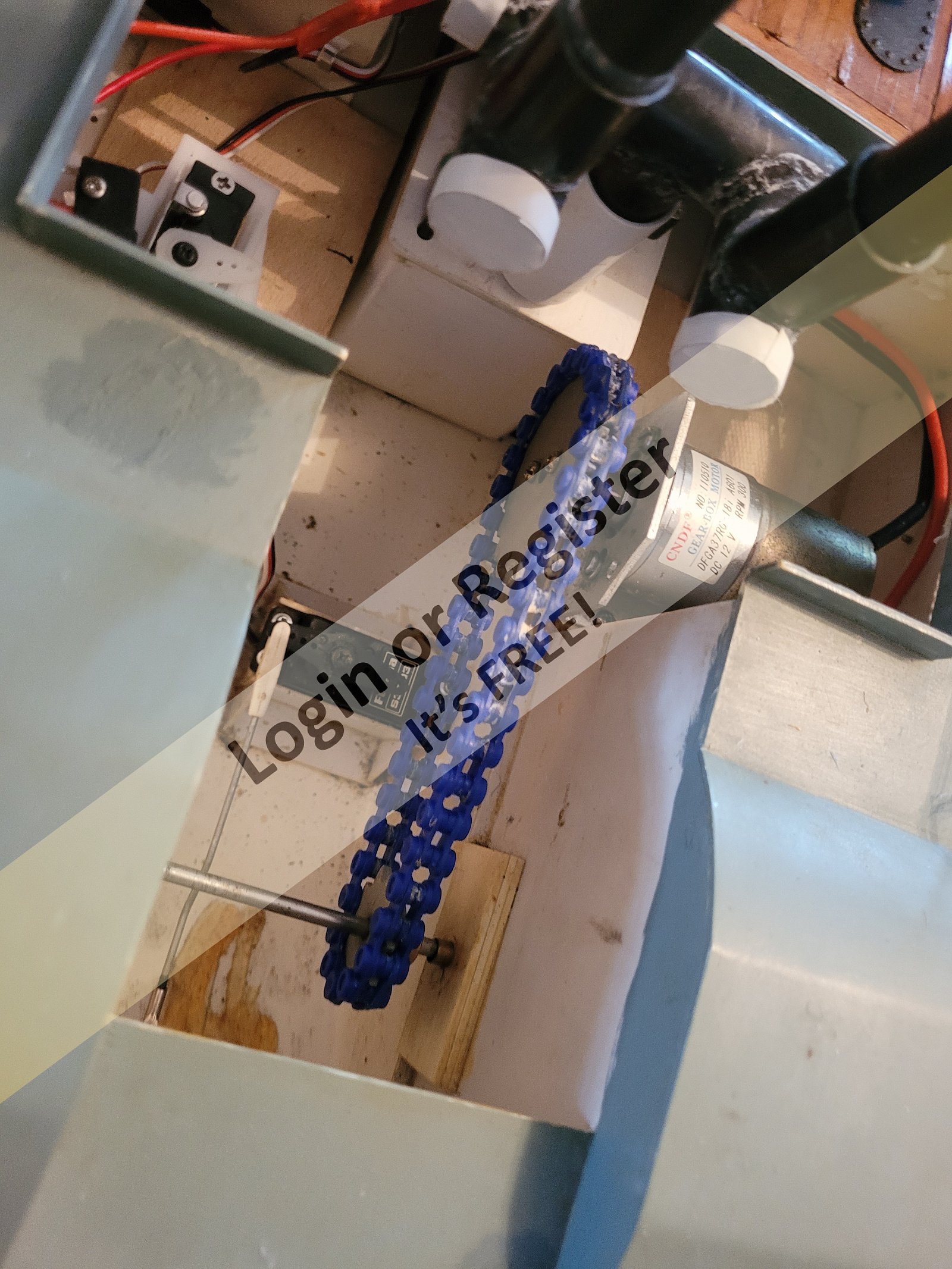 Yes you are correct, well spotted. The drive cog is slightly larger than the one on the shaft. This is due to the space allowed. The speed is controlled by an electronic speed controller . The geared motor draws little current so on 12 volt will run for hours on a 3 amphour battery. To much throttle just whisks the water. The paddle wheels are quite wide with a lot of paddle in the water providing power. The mist steam unit output is linked to the throttle as is the sound generator.