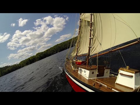 This guy engineered a retractable keel fin and rudder for his Irene schooner.